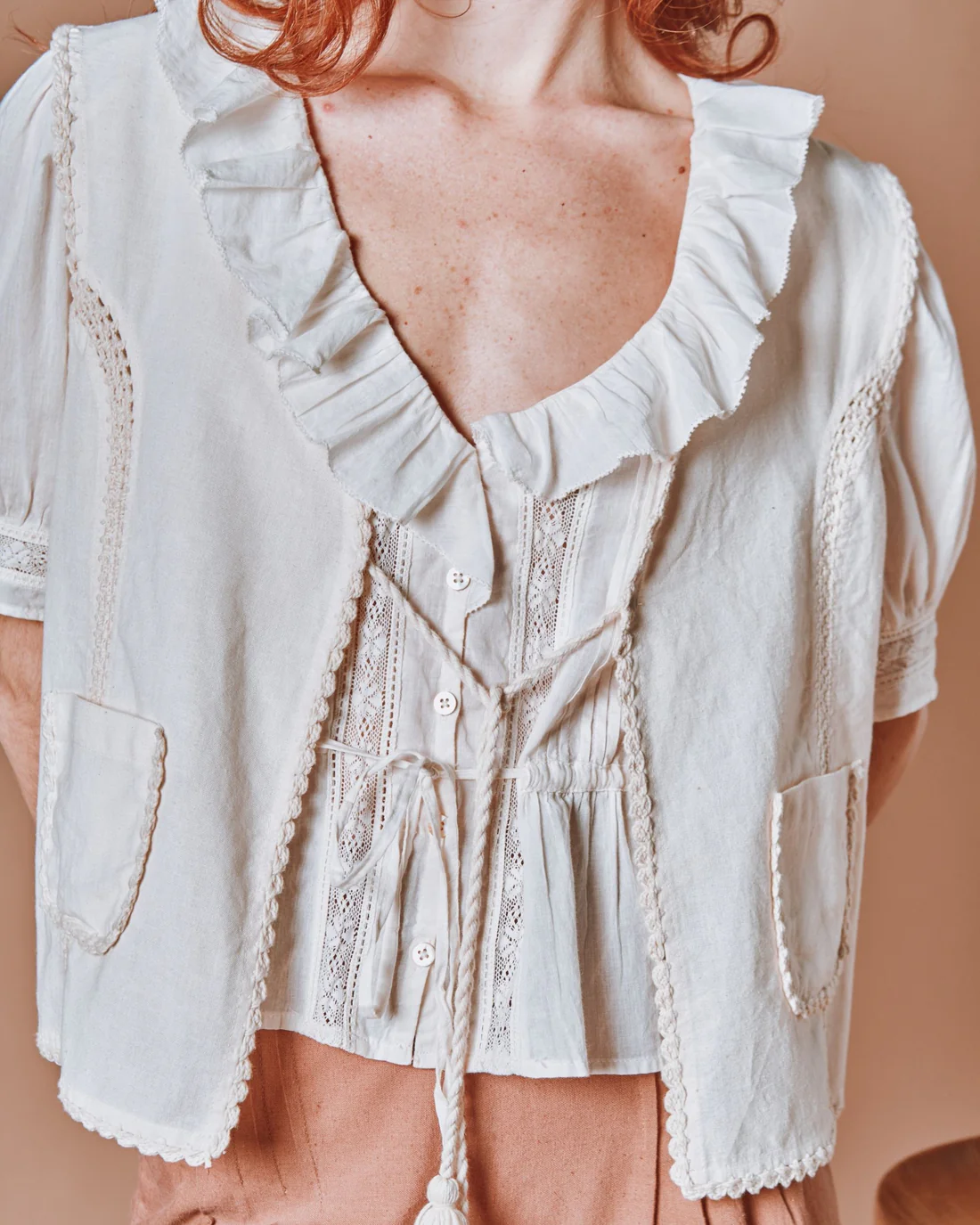 Blusa damoiseau vintage volantes creme
