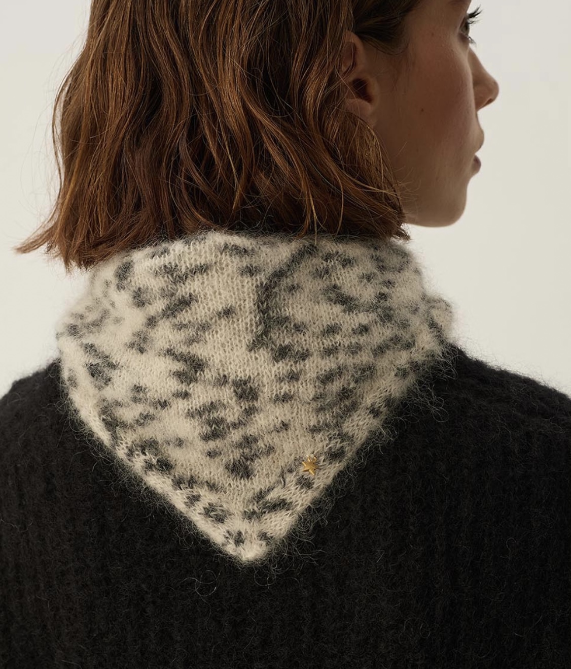Bufanda triangular estilo de lana de mohair.