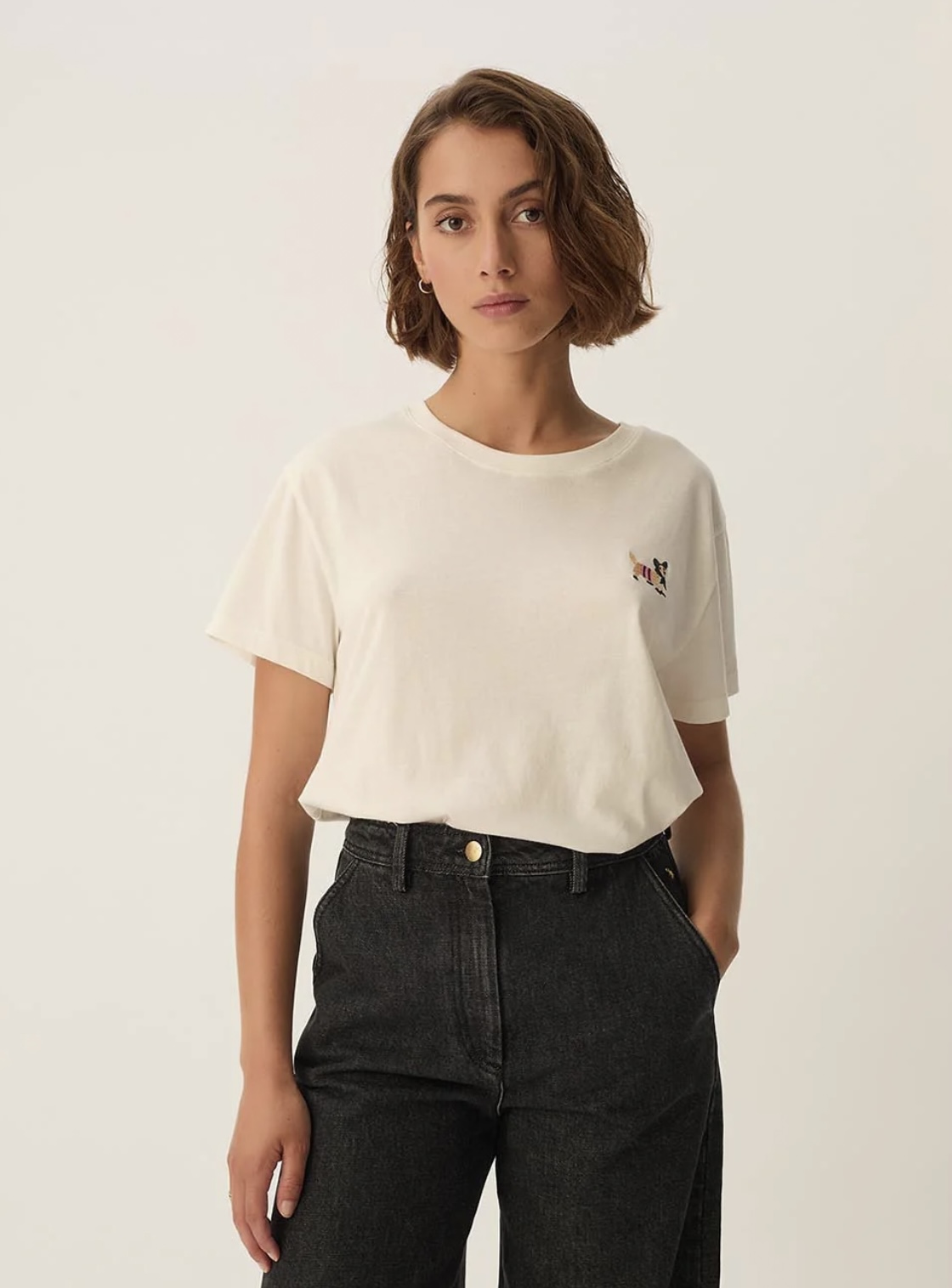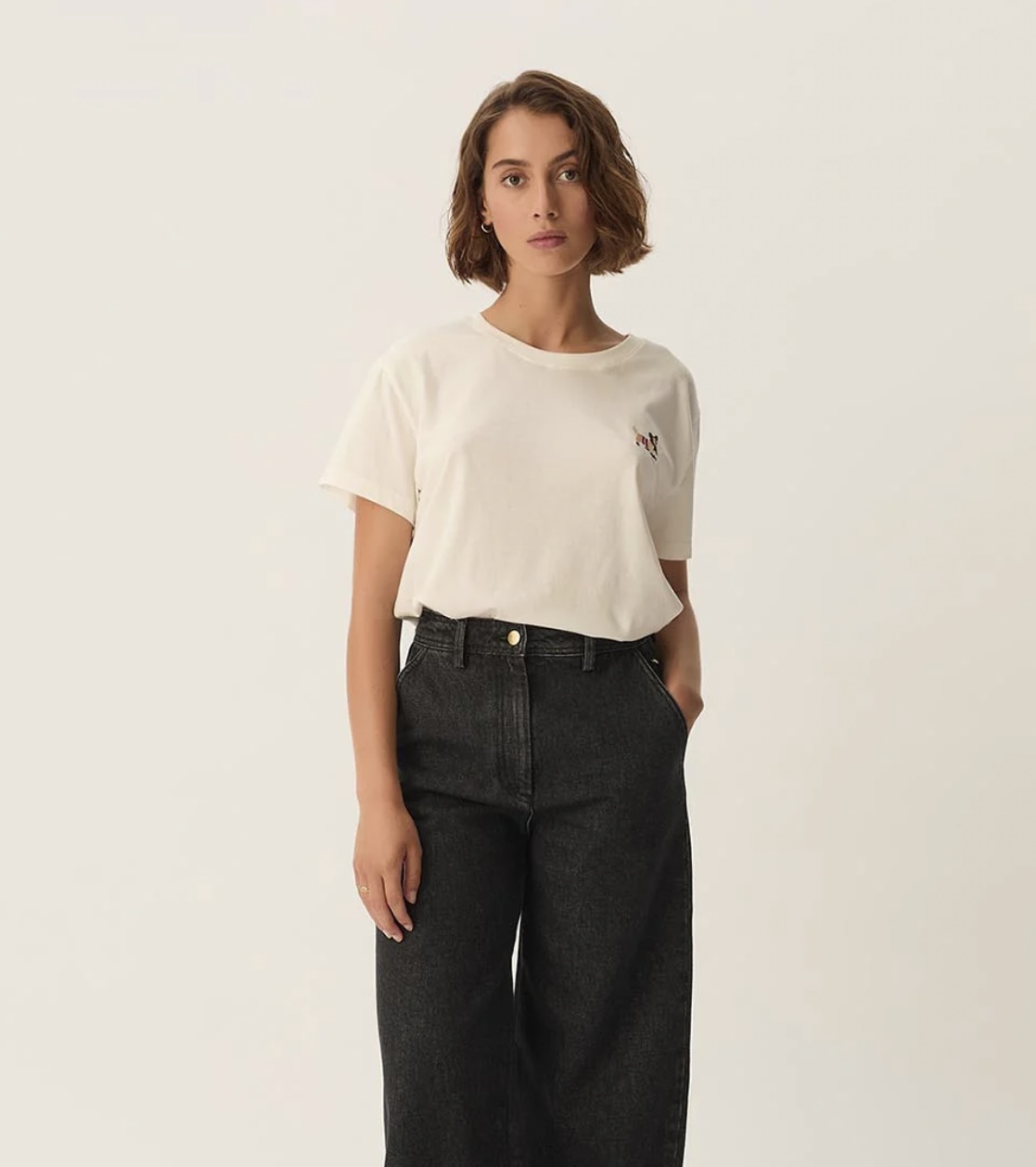 Cuello redondo acanalado • Bordado exclusivo en el pecho