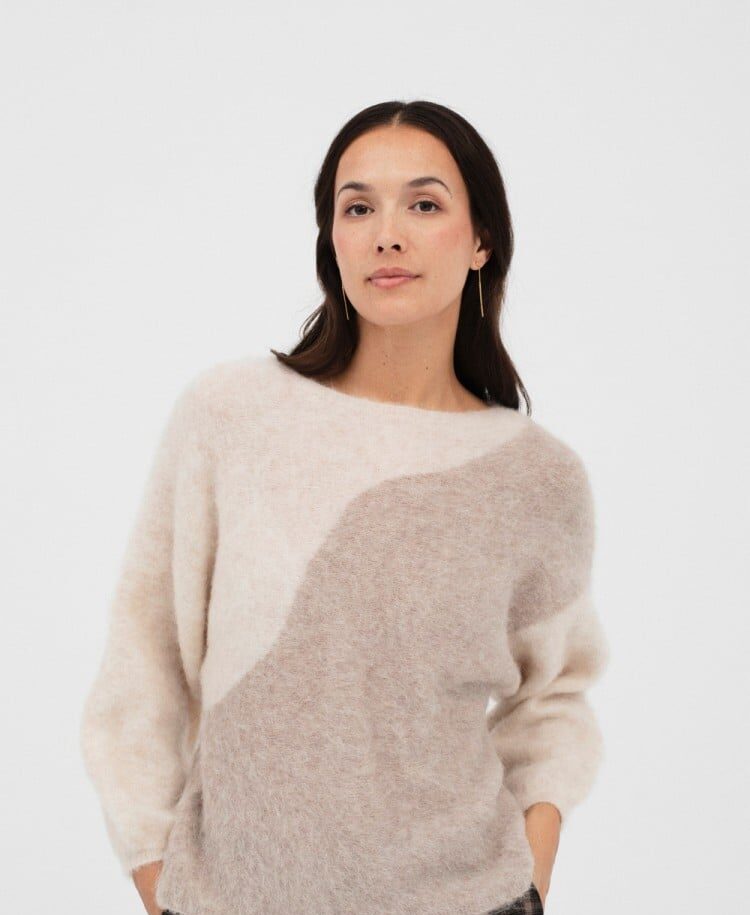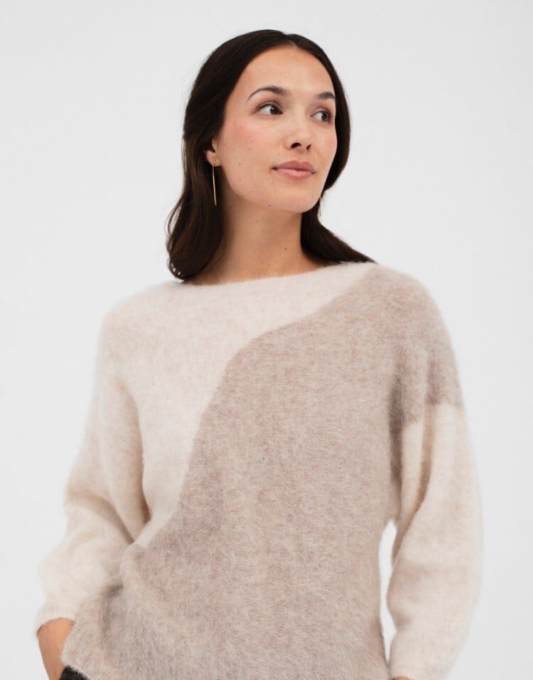 Confeccionado en intarsia bicolor dándole un toque moderno y elegante.