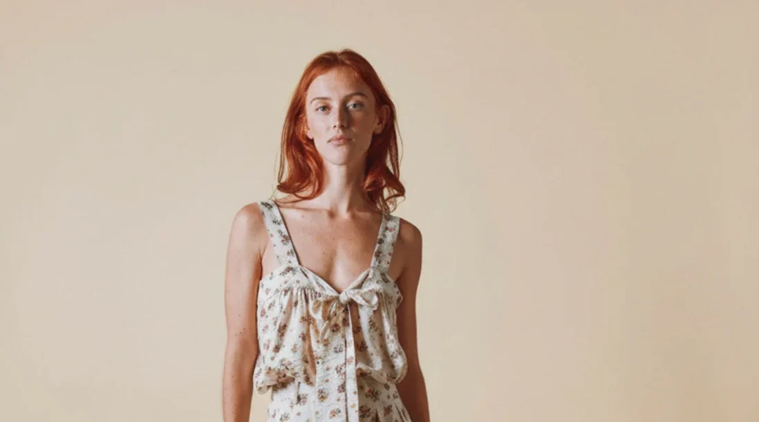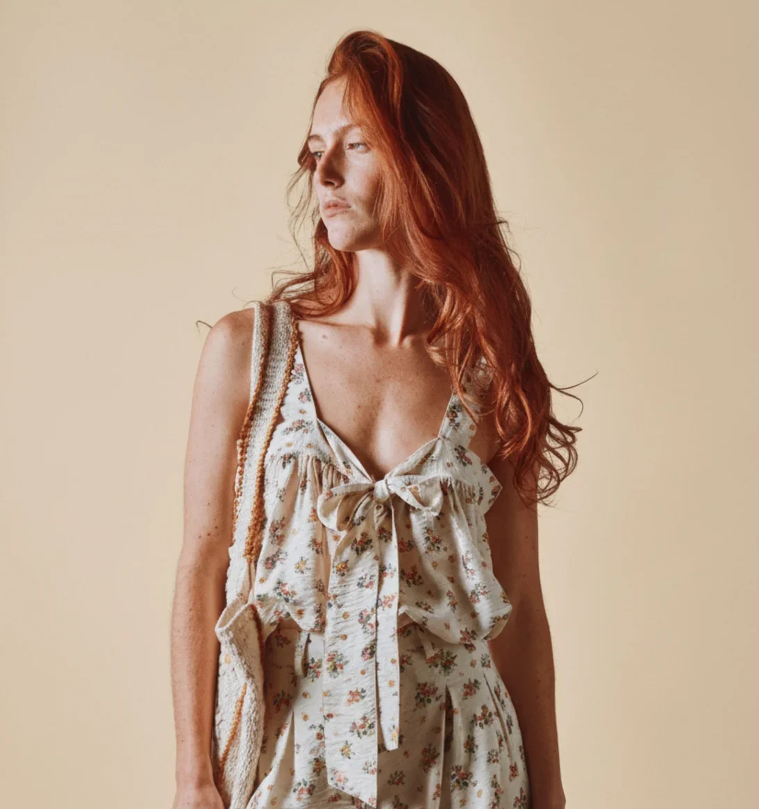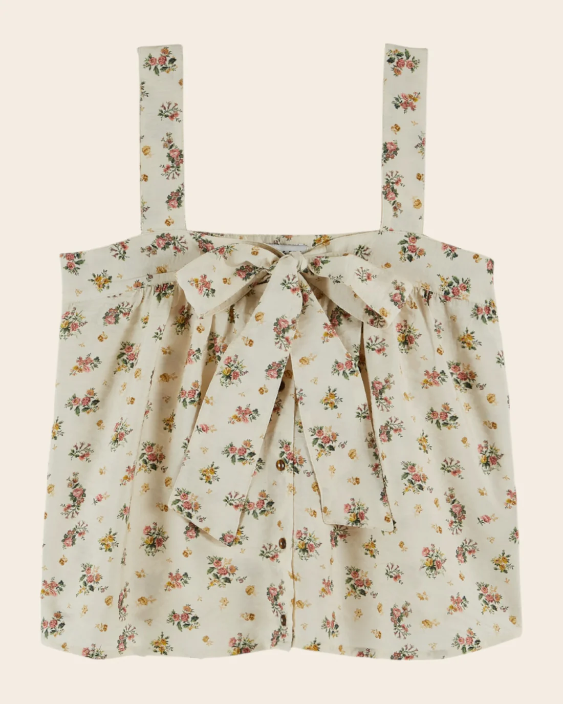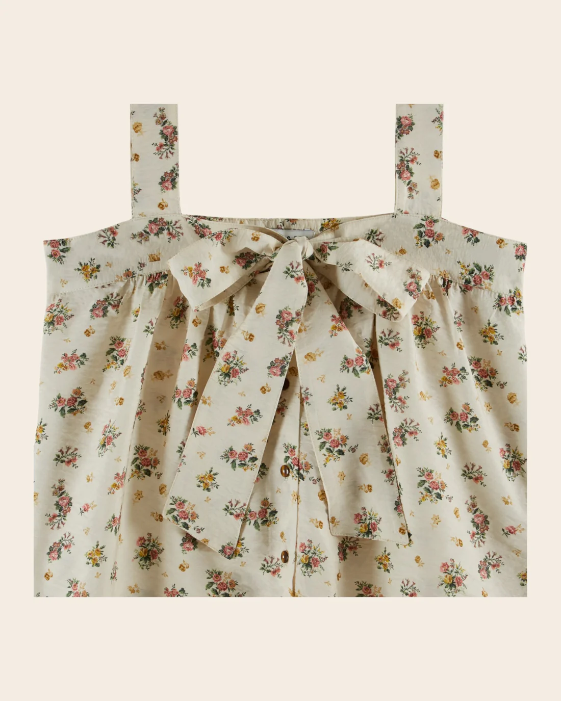 Top de viscosa con lazo y estampado floral en color crudo.